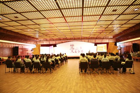 在荡涤人心清净和雅的古琴独奏之后,是梵文夏令营各小组学习心得报告环节。此次梵文夏令营共有八个小组,每个小组都准备了精彩的报告。他们有的以音声说法,表达心情与意志;他们有的通过叙述日记的形式来表达学习体悟与心境,他们有的通过舞蹈来展现自己的情感与意境;他们有的通过茶道、书法来展现学习成果与学习过程,他们有的通过演唱佛教梵呗来展现所学的知识与体悟。在各种形式的报告中,他们将七天的夏令营中所学的知识与自己的知识巧妙结合在一起,来展现自己的才艺,来表现夏令营的感受与体悟。虽然每个小组的成员来自不同的地方,从事不同的职业,拥有不同的知识,但是在梵文夏令营助教与各小组组长的精心组织下,每个小组都是以一个整体出现的,来展现本小组的风采与精神,体现了佛教和合精神,展现了中国高级知识的精神面貌。