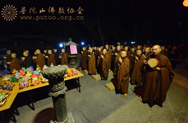 2015年9月27日、农历乙未年八月十五日,恭逢月光菩萨圣诞,中国传统中秋佳节。晚上18时30分,普陀山佛教协会本部与普济禅寺常住全体僧众齐聚普济禅寺圆通宝殿前,隆重举行“礼拜月光菩萨”祈福法会。