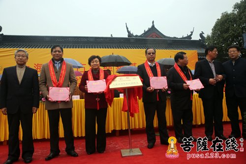 出席庆典的领导嘉宾有:上海市民族宗教委副主任王君力,上海浦东新区区委常委、统战部部长陈庆善,上海浦东新区政协副主席吴泉国,上海浦东新区统战部副部长、民宗委主任钟翟伟,上海市委统战部民族宗教处处长宗斌,上海浦东新区新场镇党委书记胡秋华,上海浦东新区新场镇镇长林廷钧,上海浦东新区统战部民族宗教处处长钱月明,上海市佛教协会副会长周富根,上海佛教协会秘书长张国铭等。