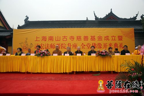10时30分,本寺慈云基金成立暨灵宏法师晋院升座、全堂佛像开光典礼举行。上海浦东新区佛教协会会长、法华学问寺开山宗长大熙法师主持庆典并介绍出席领导嘉宾、高僧大德。