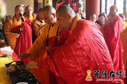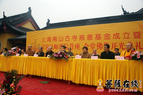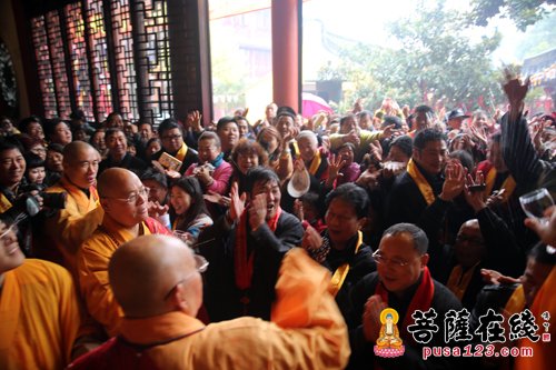 出席庆典的高僧大德有:中国佛教协会副会长、玉佛寺方丈觉醒大和尚,中国佛教协会副会长、江西省佛教协会会长、南昌佑民寺方丈纯一大和尚,中国佛教协会副秘书长、上海市佛教协会会长、静安寺方丈慧明大和尚,中国佛教协会副秘书长、浙江省佛教协会副会长、杭州市佛教协会会长、灵隐寺方丈光泉大和尚,上海市佛教协会名誉会长、真如寺法主妙灵长老,上海市佛教协会副会长、上海沉香阁住持定慧法师,上海市佛教协会副会长、万佛阁住持性康法师,上海市佛教协会副会长、法藏寺住持光慧法师,上海市佛教协会副会长、宝山净寺方丈世良大和尚,上海浦东新区佛教协会会长、法华学问寺开山宗长大熙法师,江苏省佛教协会副会长、南通市佛教协会会长、广教寺方丈俊才大和尚,江苏省佛教协会副会长、无锡市佛教协会会长、南禅寺方丈能开大和尚,上海市佛教协会副秘书长、金山区佛教协会会长、东林寺方丈广德大和尚,上海市佛教协会副秘书长、奉贤区佛教协会会长、东海观音寺主持慧芝法师,上海金山区佛教协会副会长、万寿寺方丈续建大和尚,浙江省绍兴市佛教协会副会长、安康寺方丈法弘大和尚,上海青浦区佛教协会会长、报国寺住持昌智法师,上海天光寺住持能照法师、上海二严寺住持智能法师,上海松隐禅寺法定法师等。