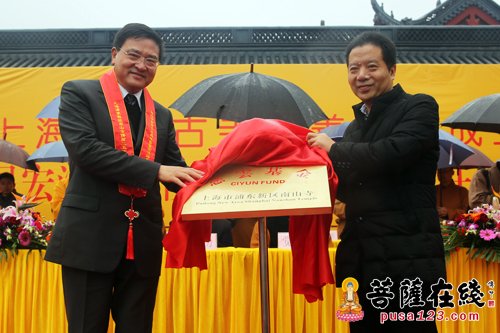 “无缘大慈,同体大悲”,南山古寺一直为社会公益慈善事业做出积极的贡献。南山寺在灵宏法师荣膺方丈的喜庆日子里特别设立“南山寺慈云基金”,专项用于资助新场、浦东,甚至外省市扶贫助学,尤其是家境贫困且成绩优异的在读学生,以进一步弘扬佛教扶贫济困的慈爱精神。浦东新区政协副主席吴泉国先生、新场镇党委书记胡秋华先生共同为“南山寺慈云基金”揭牌。