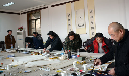 2016年2月3日上午,徐州兴化禅寺与徐州市鼓楼区美术家协会联合在兴化寺缘源书画院举办迎春笔会。