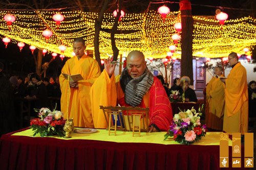2016年2月16日(农历正月初九),帝释天圣诞日。为感恩三宝功德,慈光摄照,感恩诸天护持,道场安和,苏州寒山寺在寒拾殿前举行斋天祈福法会。