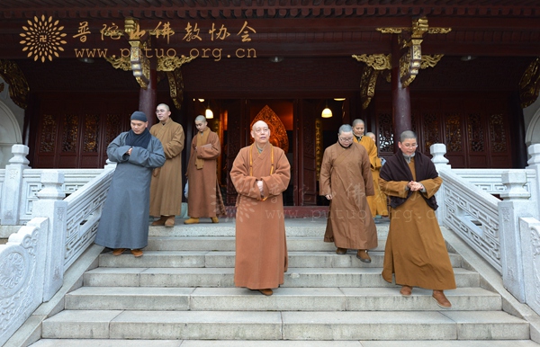 2016年1月29至30日,在新春来临之际,普陀山佛协会长、普济禅寺方丈道慈大和尚率副会长兼秘书长门肃法师,副会长定明法师等一行,先后前往本山慧济禅寺、宝陀讲寺、法雨禅寺、大乘禅院、南海观音、福泉禅林、梵音洞、善财洞、圆通禅林等寺院进行新春慰问与座谈,了解各寺院的情况及年前各项工作的准备,对大家一年来的辛勤工作表示感谢,对正在施工工地进行视察并作现场指导,同时嘱咐各寺院监院加强消防安全意识、做好防寒防冻措施,过一个平安吉祥的春节。