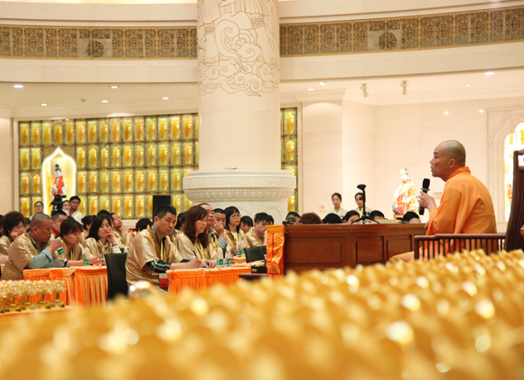 以佛法的殊胜功用来庄严人心、净化心灵、启迪智慧,使社会祥和安定。