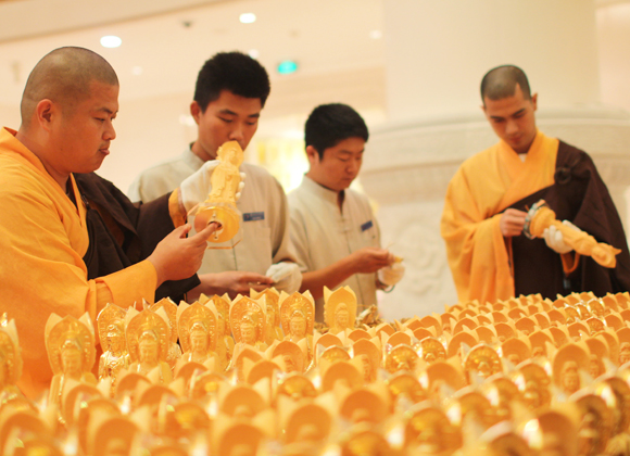 “拜佛,是以我们最尊贵的头顶礼佛最卑下的足,称作「接足礼」。此修学的目标,在断除我们骄慢(骄傲、怠慢)的习气。我们从早到晚见一切人、一切物,就像对佛一样尊重,以尊重佛的心去尊重一切众生,这才能成就平等心。”