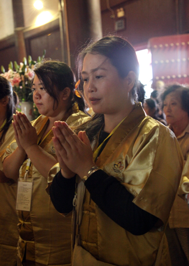 善信们随法师们共同祈愿诸佛菩萨慈悲护念国泰民安、正法久住、有情众生无病无灾、幸福非常。