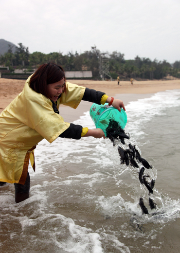 随后,施主们一起来到南海边亲手将鱼儿放生大海,海上观音居士也为不能亲临现场的施主进行委托放生祈福,并做功德回向。在场信众无不感到法喜充满,因缘不可思议。