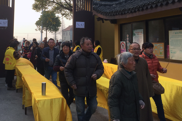 本次观音香期,本寺正式开始实行“文明敬香”,禁燃把香、高香,凡来寺信众免费赠送三支清香。礼敬佛菩萨贵在发心,不应以香的大小高低来衡量区分。在本寺的前期宣传和今天全体法师、义工的有序引导下,文明敬香开展顺利。寺内少了烟熏火燎,增添了清净祥和的氛围。
