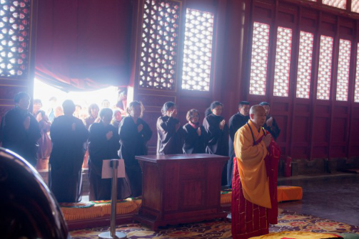 上午9时,极乐寺僧俗两序大众齐聚大雄宝殿,住持昌义大和尚拈香、主法,率众恭诵《大悲咒》七遍,观世音菩萨圣号,赞佛偈等。法会仪式、如理如法,庄严神圣,诵经祈福,龙天欢喜。