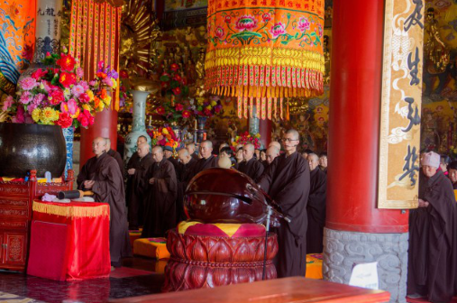 僧众领诵大悲神咒,梵音和雅,清净庄严