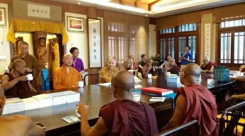 10:30左右,长老们来到佛顶寺,与南京市民族宗教事务局有关领导,江苏省佛教协会副会长、南京市佛教协会会长隆相法师以及南京市佛教协会副会长、佛顶寺住持曙光法师开展友好交流。两地佛教宗派固然存在异同,但双方一致认为,佛教文化的国际交流是十分重要的,能够帮助国家、种族间之间增进相互了解和认识。