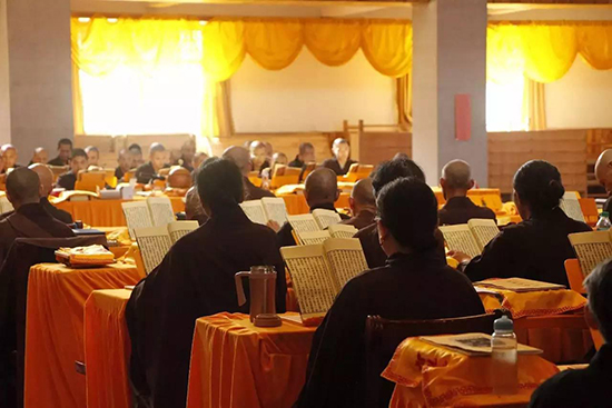2016年6月24日(农历五月二十日)上午八时,云居山真如禅寺夏安居期间诵《华严经》法会如法圆满,上纯下闻大和尚亲临法会现场领诵。