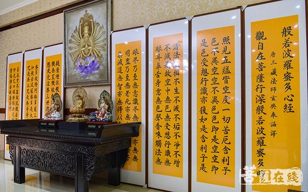张教授此次向峨眉山佛教协会共捐赠八尺正楷七条屏、篆书八条屏《心经》各二部,将分别供奉于金顶华藏寺、万年寺、报国寺、大佛禅院。