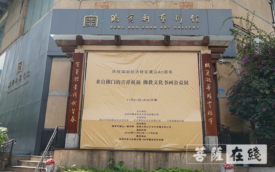 菩萨在线广东迅 11月21日,由深圳市鹏宝轩文化艺术有限公司主办,澳门中华宗教文化交流协会、北京夏荆山文化有限公司、江西佛像研究院支持,福清市福山一拂书院、福建大愿众行文化传播有限公司协办的“庆祝深圳经济特区建立40周年——来自佛门的吉祥祝福·佛教文化书画公益展”于今天下午二点五十分在鹏宝轩艺术馆隆重开幕。