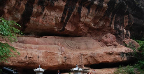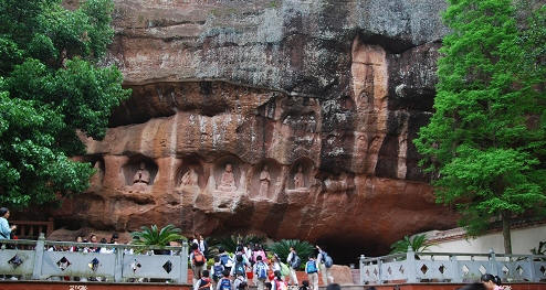 通天岩石窟长1.22公里,宽0.99公里,总面积1200亩。主要由通天岩、翠微岩、同心岩、忘归岩、群玉阁五个石窟组成。景区内岩深谷邃,树木参天,风景优雅。