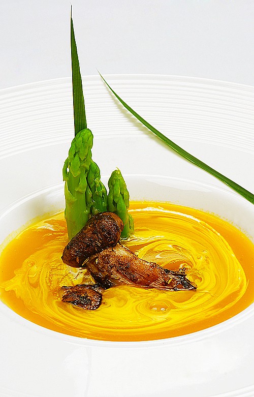芦笋奶油南瓜浓汤配油煎松茸