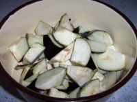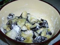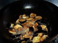 9.把茄子下入油锅炸至金黄,捞出沥油。
