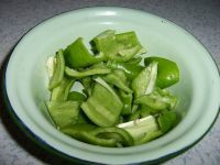 要想让茄子少吸油,就要裹上干淀粉来炸制。柿子椒不要过油,要保持清香的脆感。这样口感才会好。