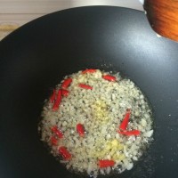 5. 烧热底油,葱姜蒜末、小米椒下锅爆香。