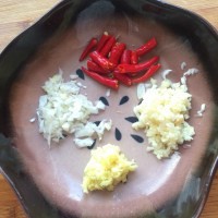 3. 葱姜蒜切末,小米椒切段。