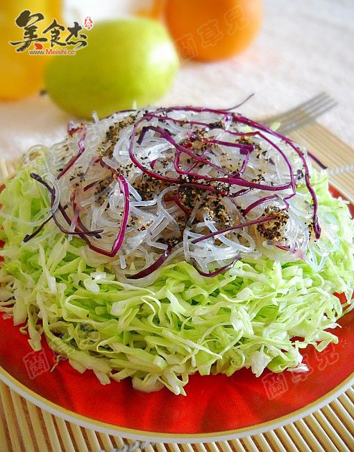 第5步粉丝沥干水分,放入碗中,倒入紫甘蓝丝拌匀