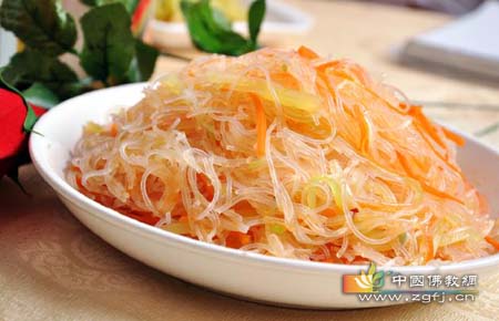 原料:粉丝两小把、色拉油2大匙、白菜200克、香菇5只、竹笋半支、榨菜丝、胡萝卜丝少许