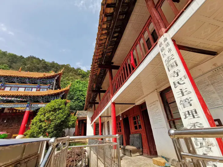 咸丰二年(1852年)编纂的《南宁县志》记载:“安国寺在城西南真峰山,明黔国公沐修建”。在明代洪武年间,带兵征南的黔国公沐英在平定曲靖后又对安国寺作了重新修缮,奠定了安国寺今后的格局。然沐公修建以及田产碑记均为后人隐匿,沐公后世裔孙于万历年间曾又题额“安国禅院”,原玄宗匾则悬挂大雄宝殿上方。以后的明清两代几次进行了重修,使其规模越来越大,保持有五殿二洞,十八院九十九间房,上千尊佛像的大寺规模。五殿即玉皇阁、观音殿、祖师殿、天王殿、大雄宝殿,洞是紫云洞和普贤洞。五个大殿各具特色,但最有特色也是最为壮观的是大雄宝殿。大殿中央是三大佛,两侧为十八罗汉,背后是五百罗汉。这些佛像高者丈余,小者也有三尺。无论大小,看上去都神态各异,栩栩如生。