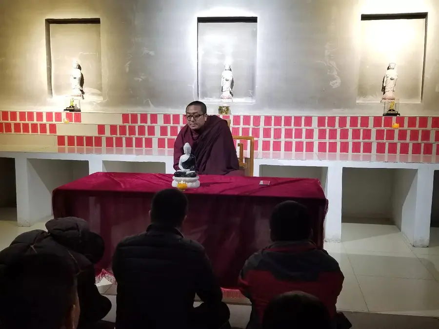 放生结束后,稍作休息,大家来到灯院,由秋阳上师现场开示。