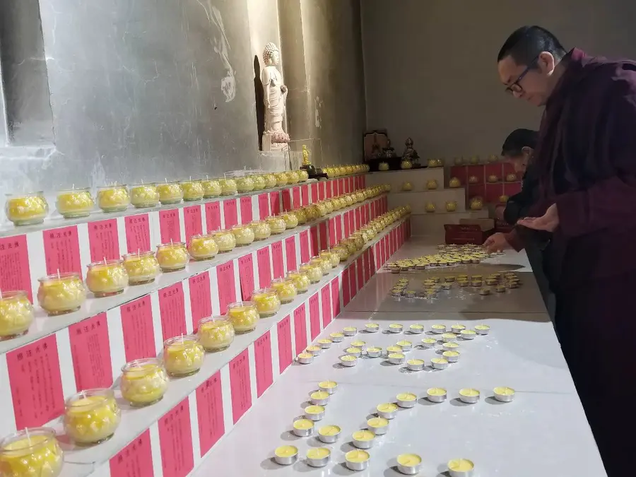 历时1个半小时的开示圆满。秋阳上师引领大家在灯院排灯、供灯。