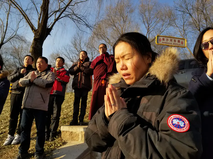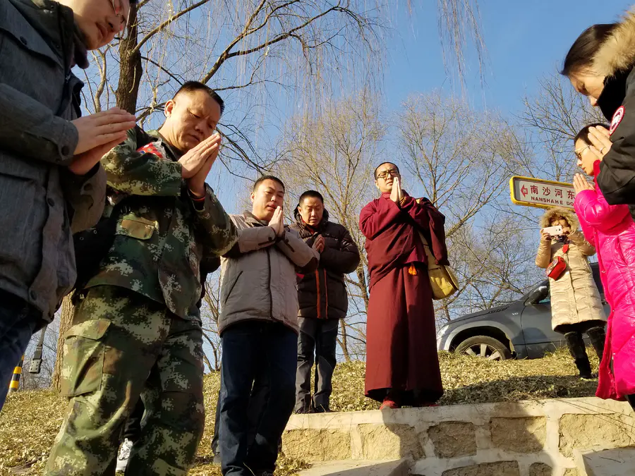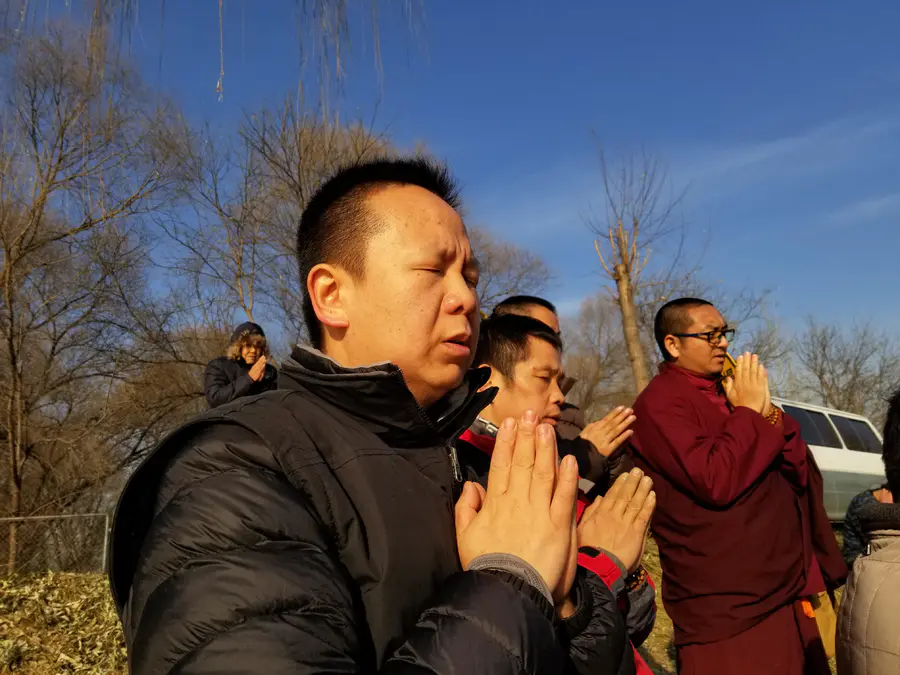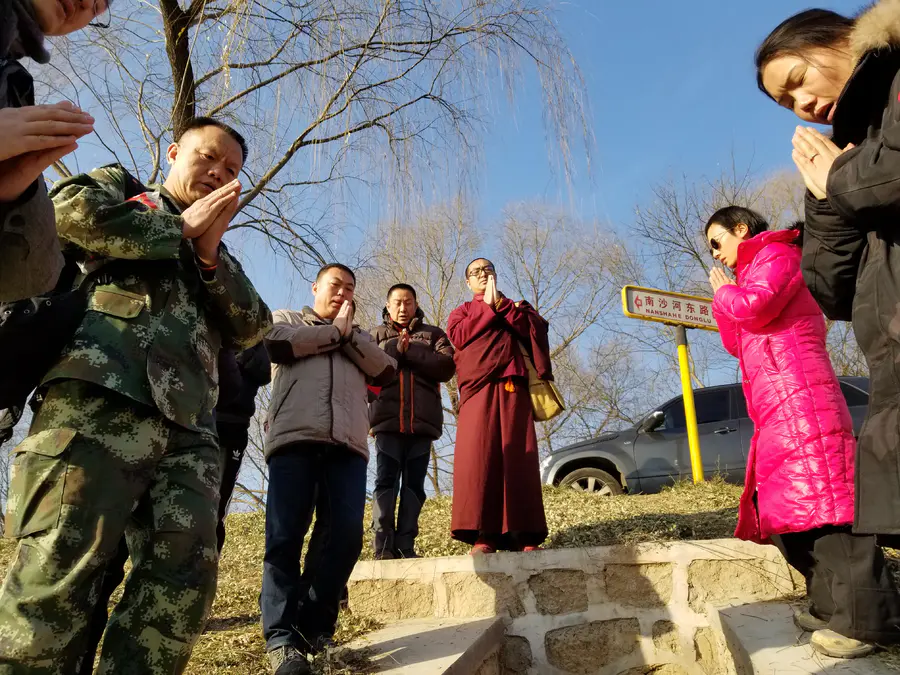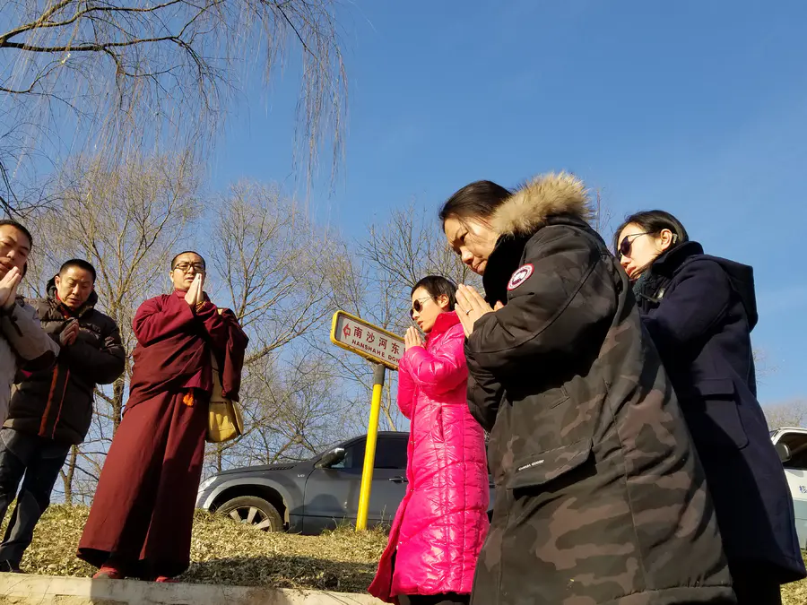 在秋阳上师的带领下,同修来到海淀上庄水库进行放生。