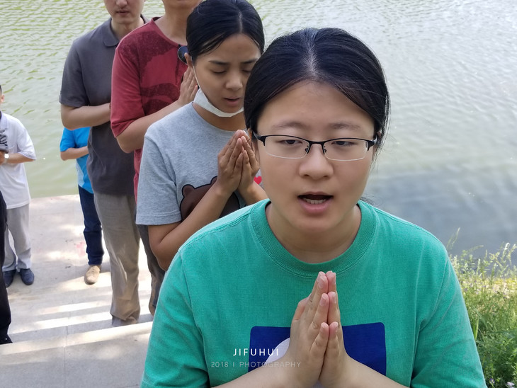 放生结束后大众一起回向,