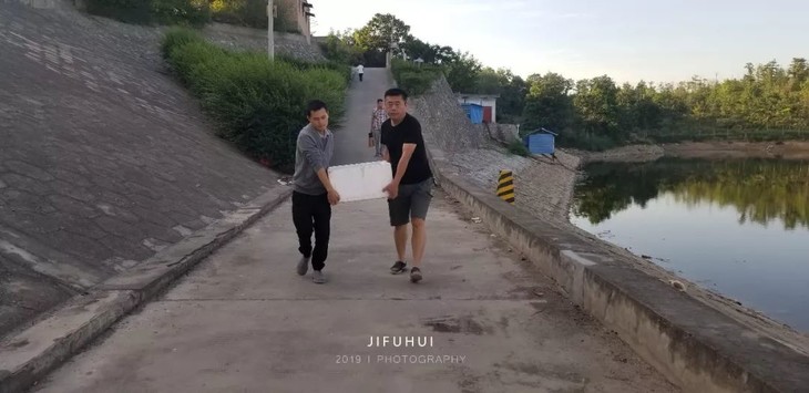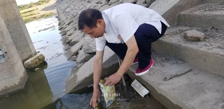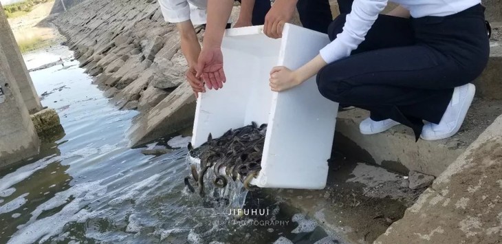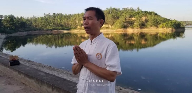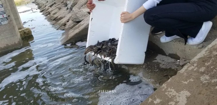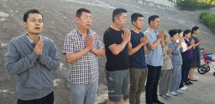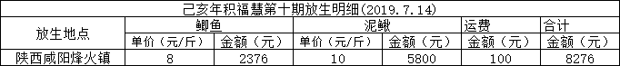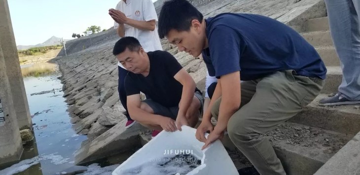 2019年7月14日,积福慧在陕西省咸阳市礼泉县烽火镇沿河村举行放生法会。由法师引领,10多位同修共同参与,放生鲫鱼297斤、放生泥鳅580斤。