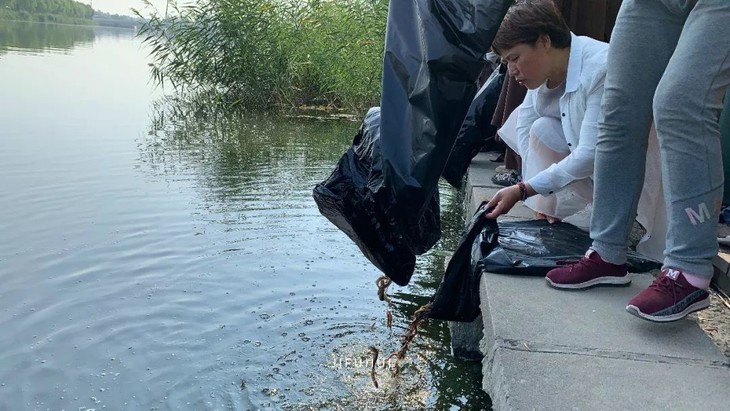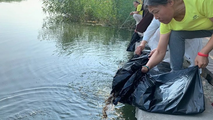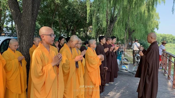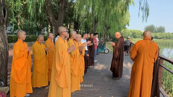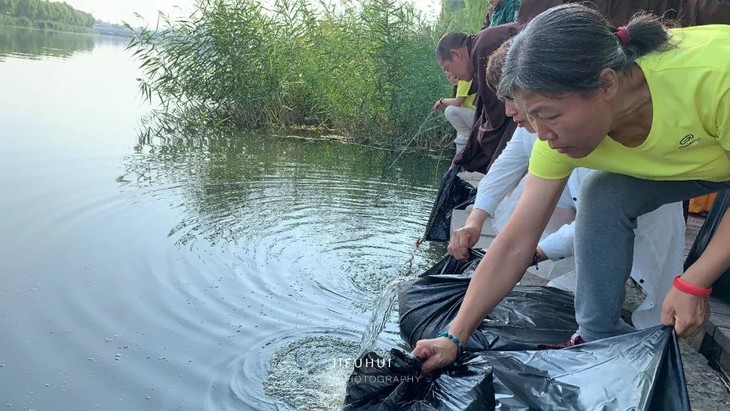 2019年9月8日,积福慧在北京市海淀区上庄水库举行放生法会。由法师引领,二十余位同修共同参与,放生泥鳅共635斤。