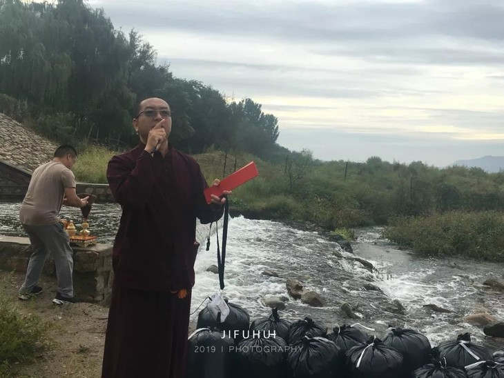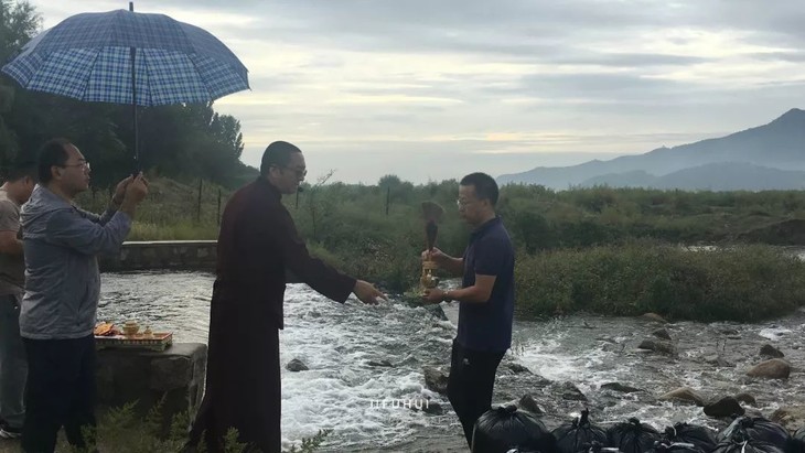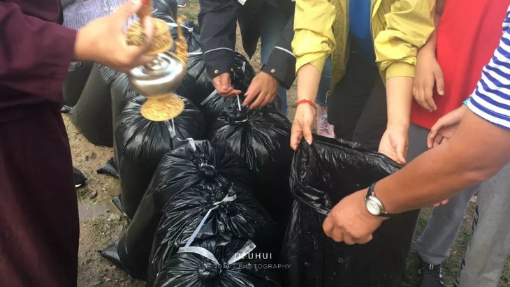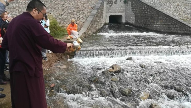 放生开始,仁波切撒甘露水