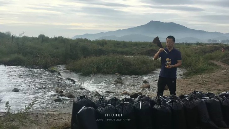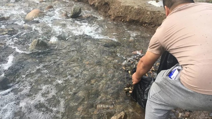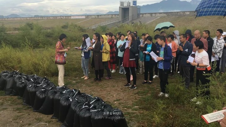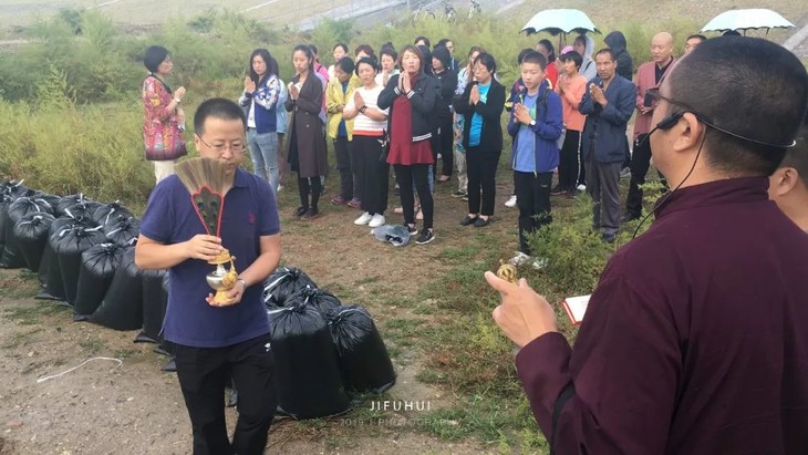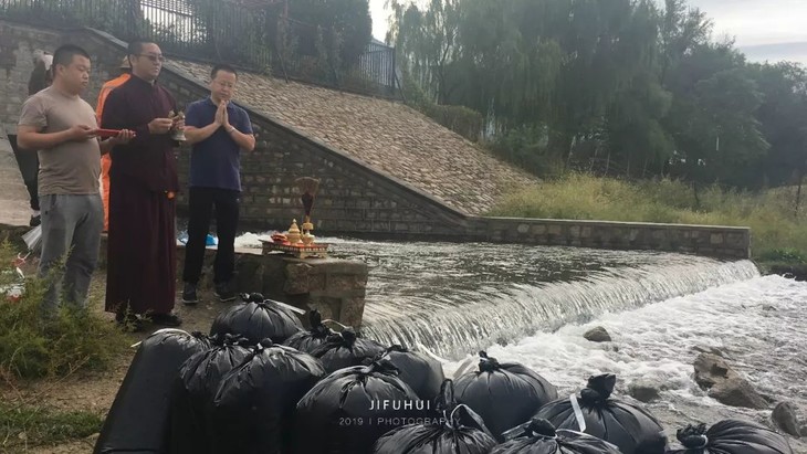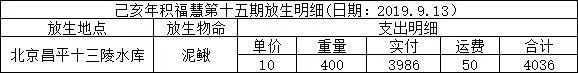 2019年9月13日,八月十五中秋节,积福慧在北京市昌平区十三陵水库二坝举行放生法会。由法师引领,六十余位同修共同参与,放生放生泥鳅共400斤。