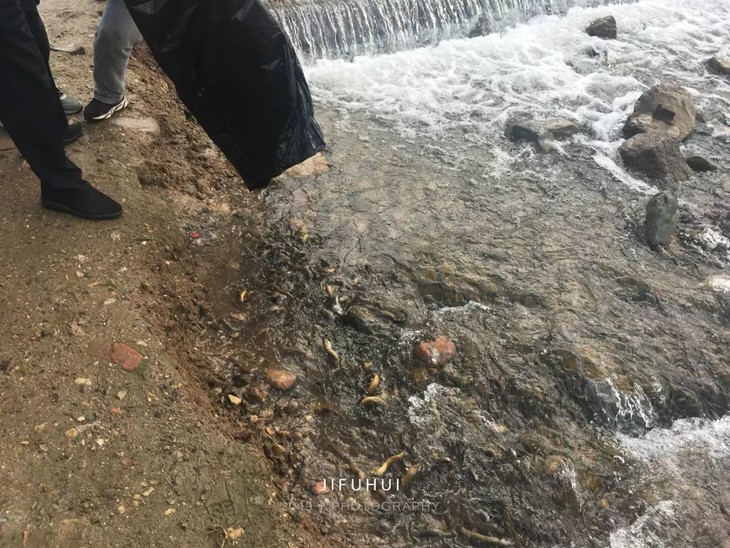 来到北京市昌平十三陵水库放生现场。