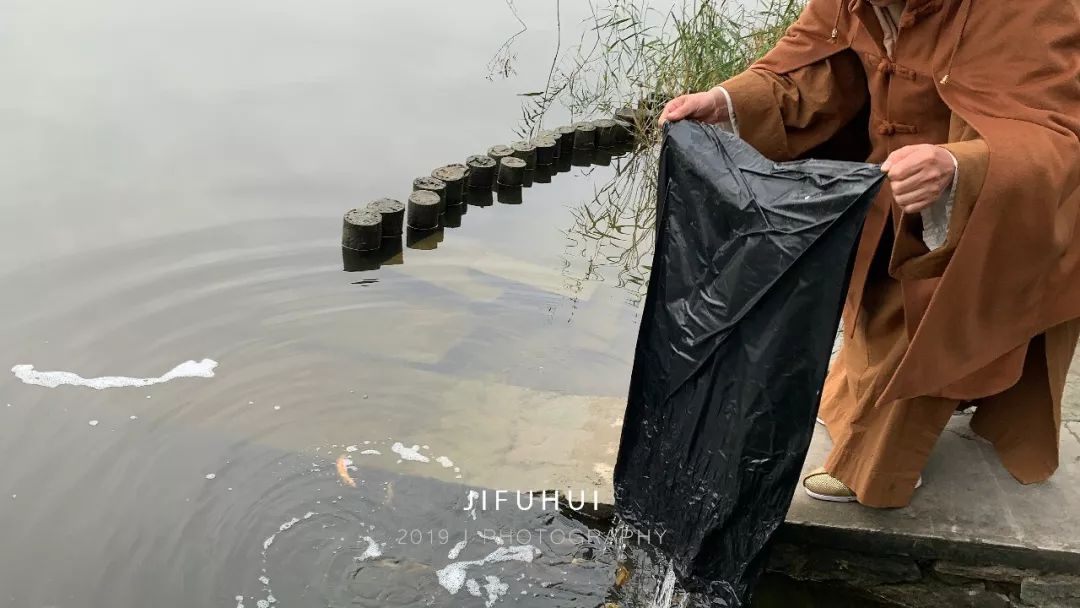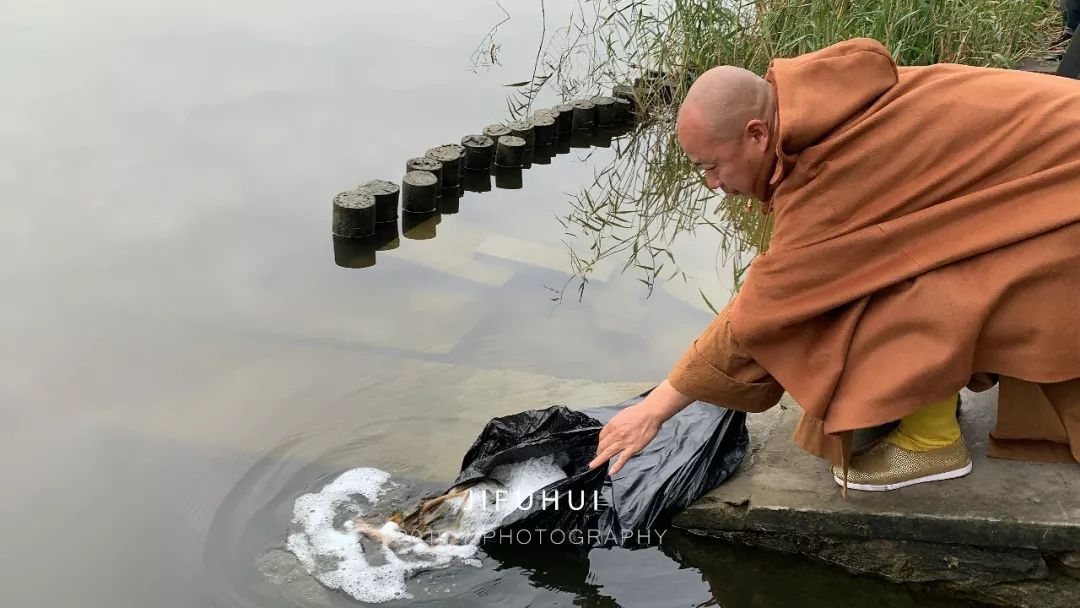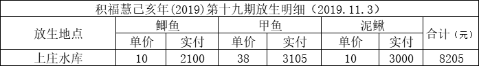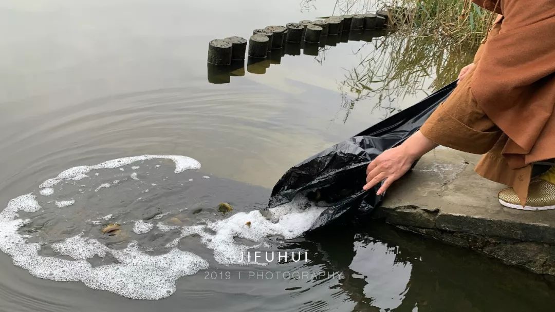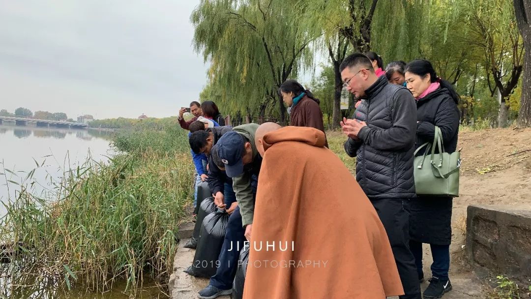 2019年11月3日,积福慧在北京市海淀区上庄水库举行放生法会。由法师引领,四十余位同修共同参与,放生鲫鱼210斤、甲鱼65斤、泥鳅320斤。