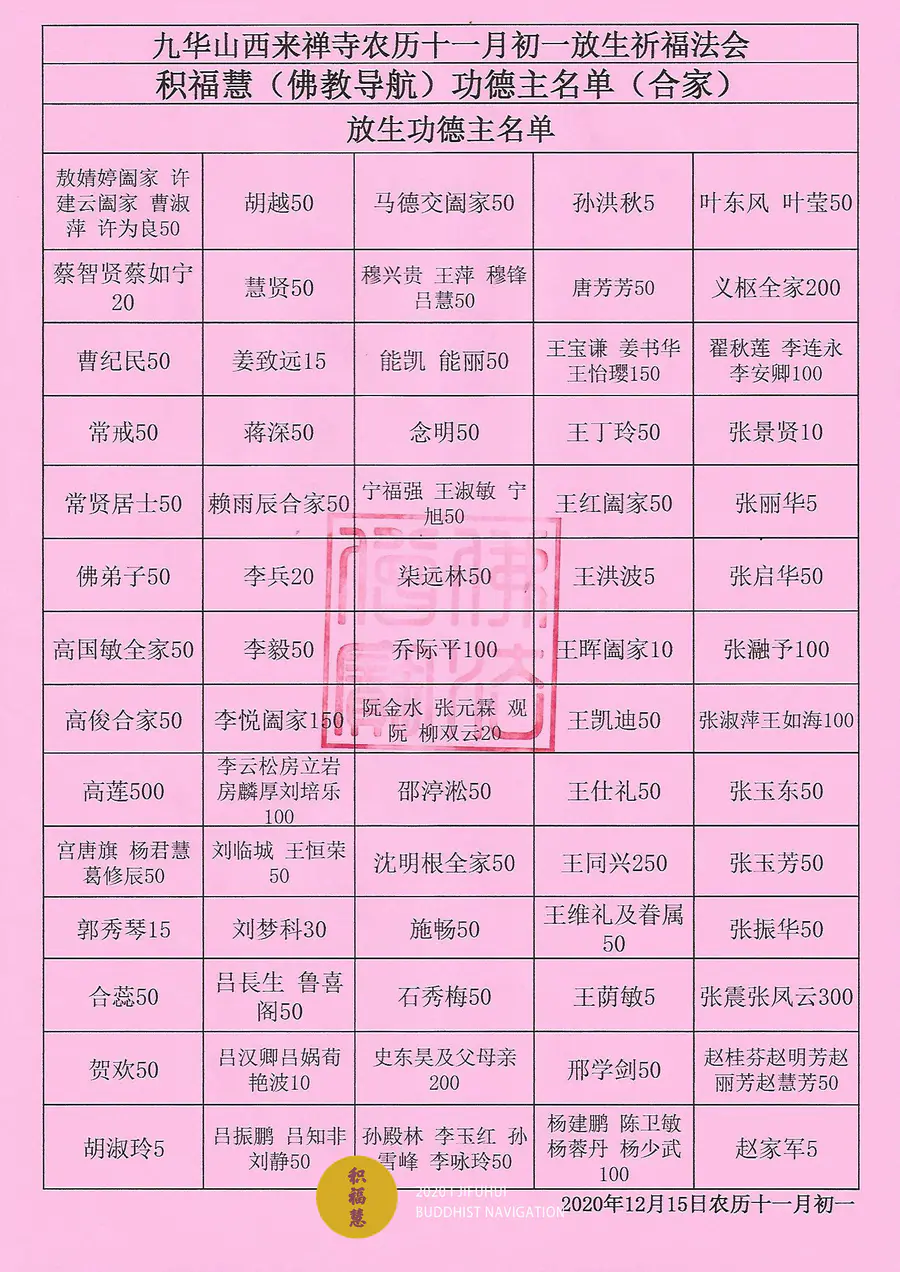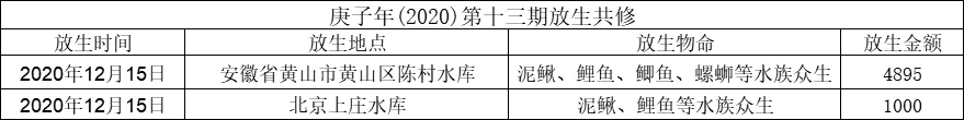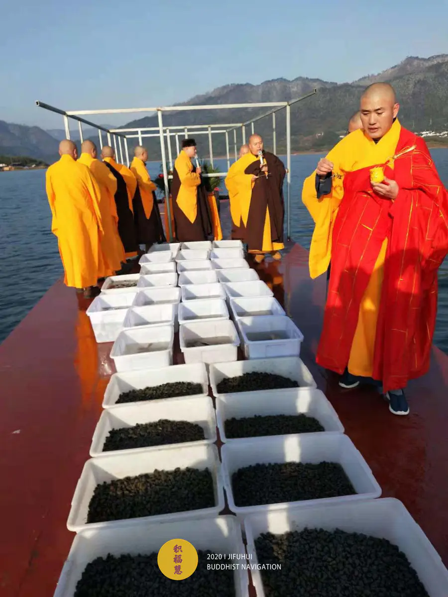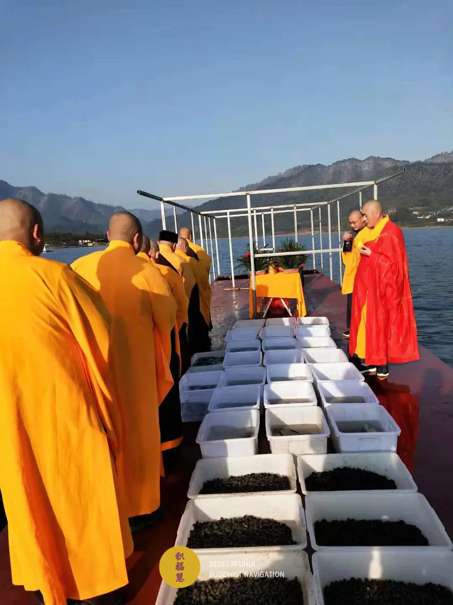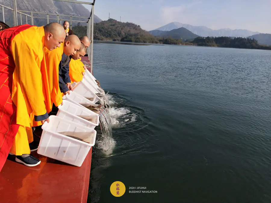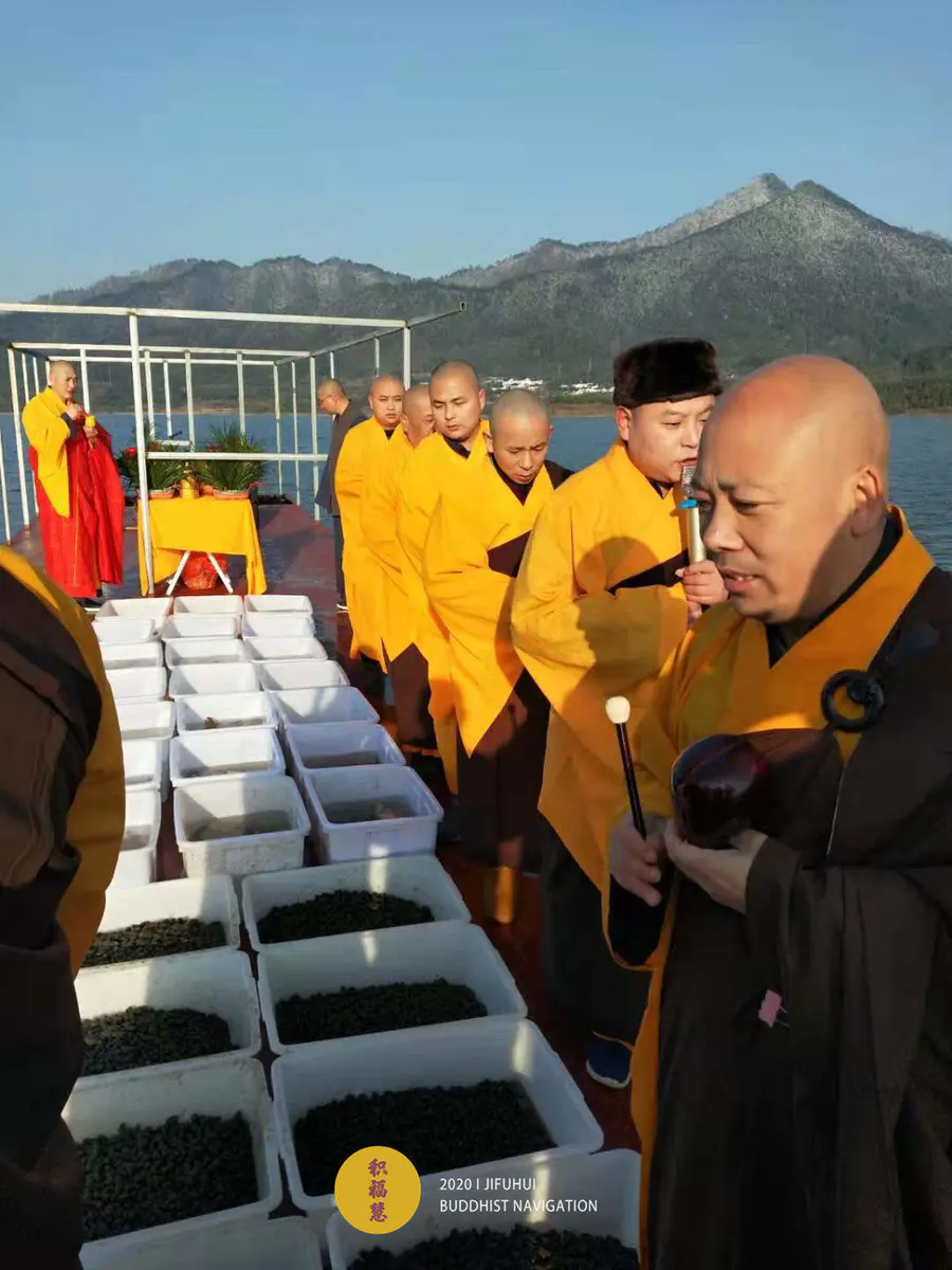 应大众所请,积福慧、佛教导航与江浙佛教联合九华山道场启建庚子年第十三期放生共修。共修自2020年12月2日始,至2020年12月14日24时止,共计13天。