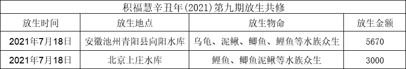 积福慧以此辛丑年第九期放生共修回向众等消灾免难、增福长寿、长享安乐、事业辉煌、如意吉祥;违缘消除,善缘增长,圆满福慧资粮,精进修行,早日成佛!