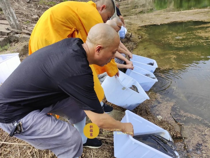 积福慧每月举行放生共修,通过倡导科学放生、人性化放生、生态化放生与规范放生,以佛教的慈悲为怀、普度众生为根本,救护众生、培养自他的慈悲心,实现人与自然的和谐共处。