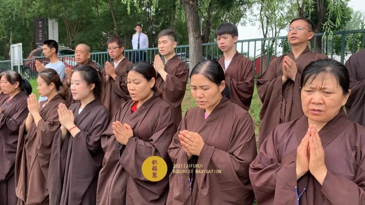 居士们做放生前仪轨
