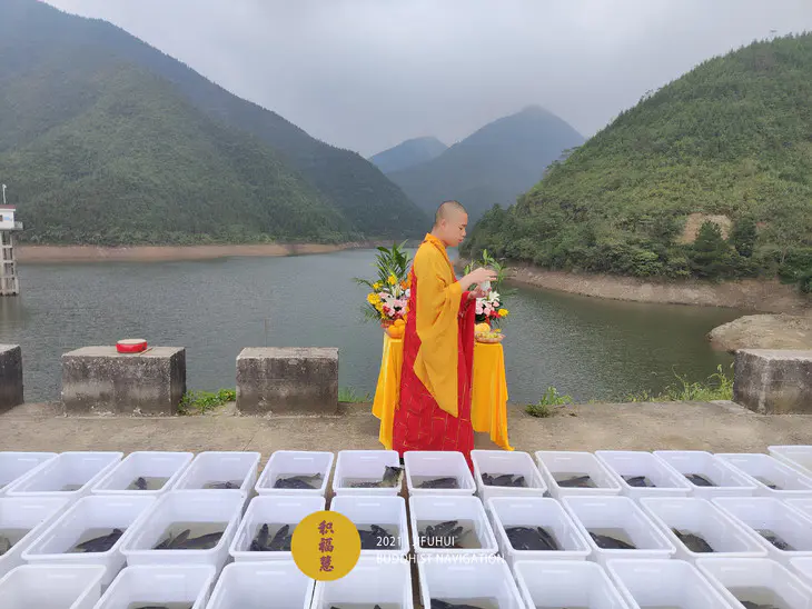 此次放生法会在安徽池州晚口水库举行