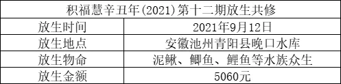 积福慧以此辛丑年第十二期放生共修回向众等诸根完具,疾病消除,不逢厄难,吉祥安康。解脱生老病死,忧愁苦恼。一切展转皆起慈心,利益安乐,各各欢悦,互为饶益。渐次修行诸菩萨行,速得圆满。