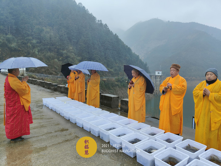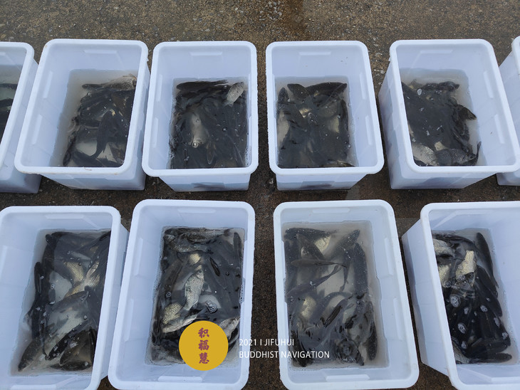 随着一声声南无阿弥陀佛的祈念,百千物命得离苦,惟愿众等被放以后,地宽水阔,永不遭遇网捕相加,见佛闻法,念念增明。