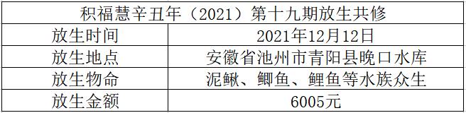 积福慧以此辛丑年第十九期放生共修回向众等福慧双增,心想事成,吉祥安康,诸事顺利。厄难疾疫,即得除愈,万祸冰消,千祥云集。弭杀劫而邀天眷,挽世道而正人心,入佛知见,善念相继,同得解脱,共证真常。
