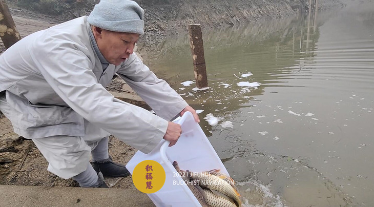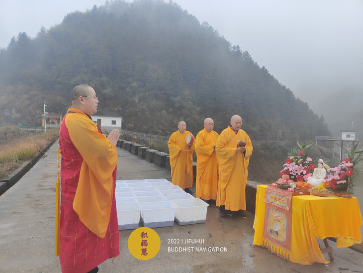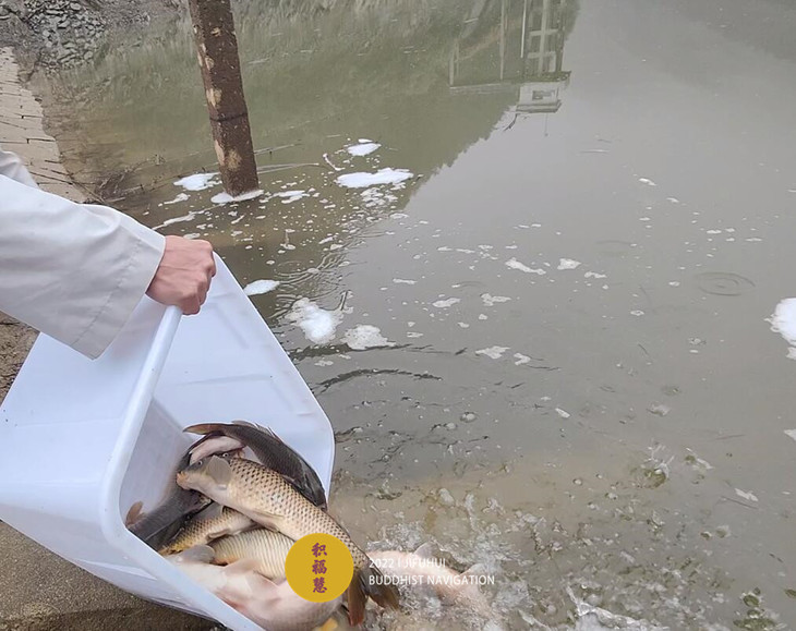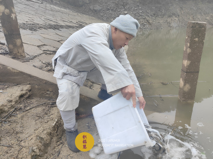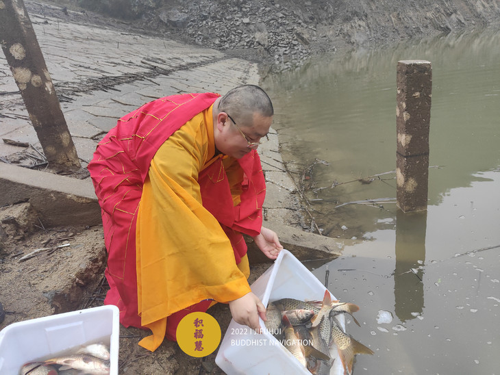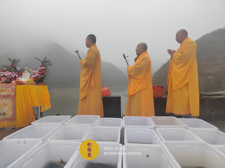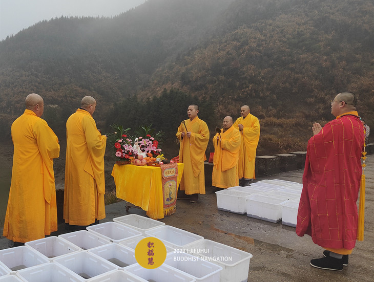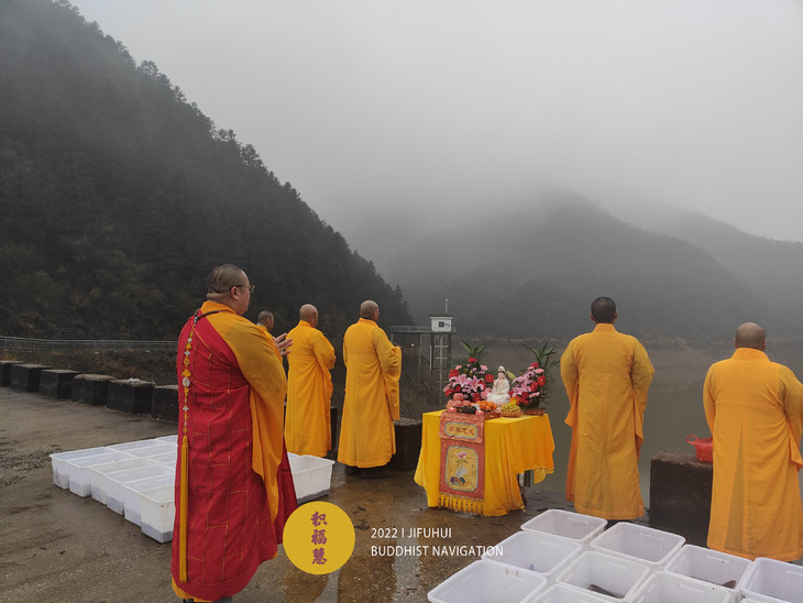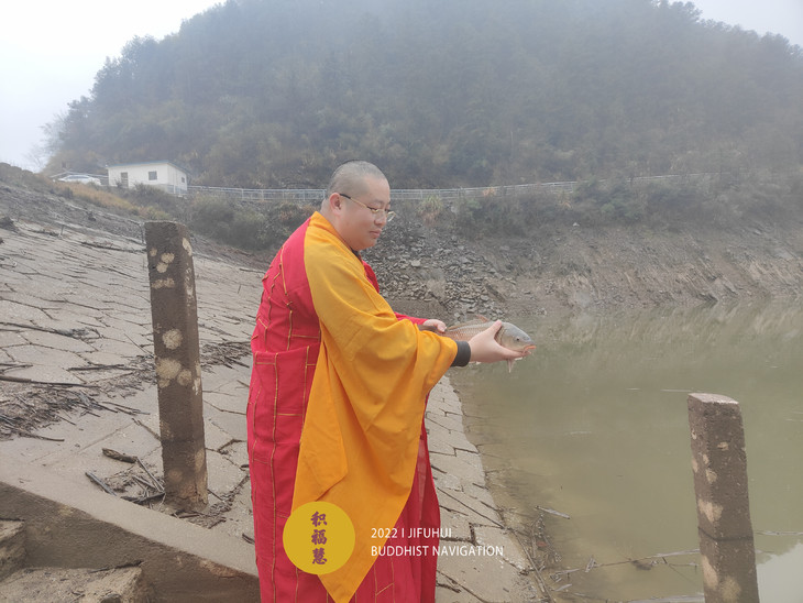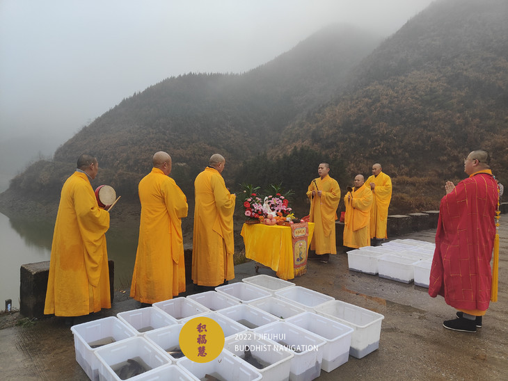 此次护生在安徽池州晚口水库举行。一场冬雨过后,寒气袭人,也没能影响到此次活动。