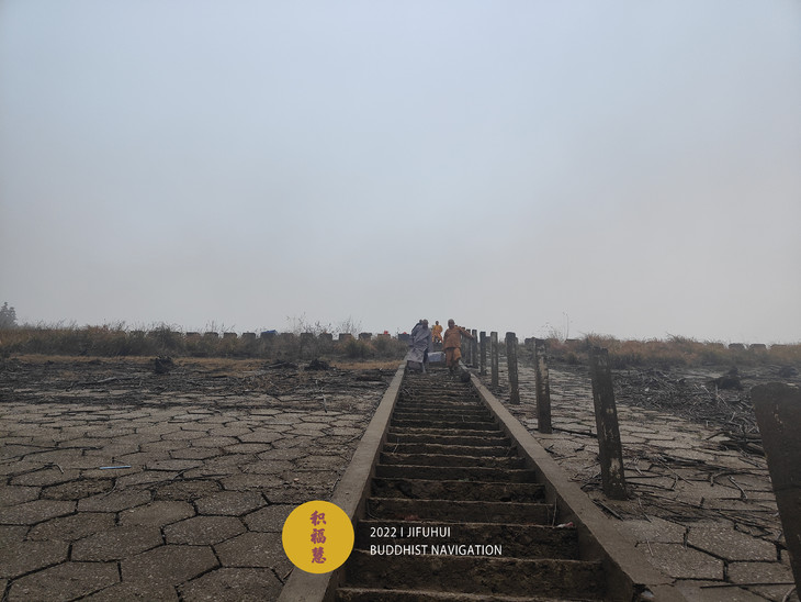 仪轨圆满。因水库的水位线比较低,法师们先小心翼翼的从坝顶搬运物命到水边。