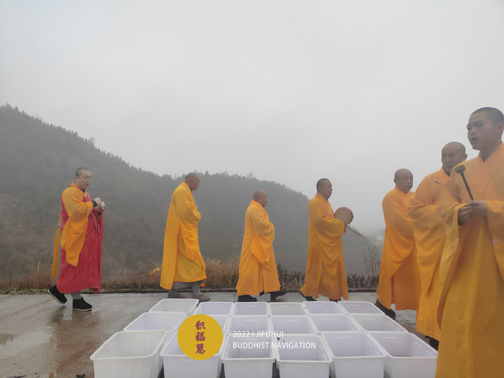 法师们依仪轨诵《大悲咒》、《心经》、读忏悔文、皈依文、发愿文、回向文等。